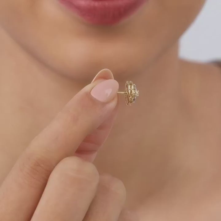 These pure gold earrings feature a stunning floral motif with an intricate design studded with lab-grown diamonds.