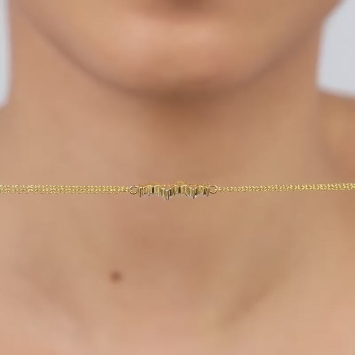 This gold bracelet features a heartbeat motif studded with lab diamonds.