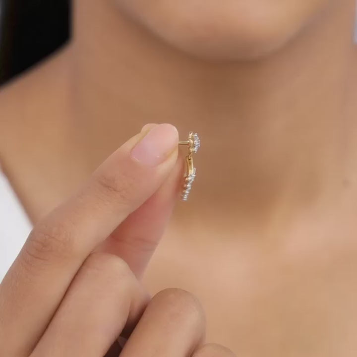 These pure gold earrings feature a stunning floral design, with a cluster of sparkling lab diamonds forming the petals.
