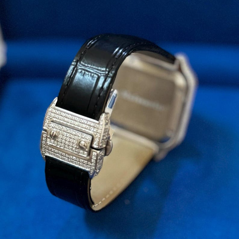 Mens Black Leather Watch Moissanite 41mm Automatic Stainless Steel Luxury Icy Hip Hop Custom Wristwatch Roman Numeral Dial