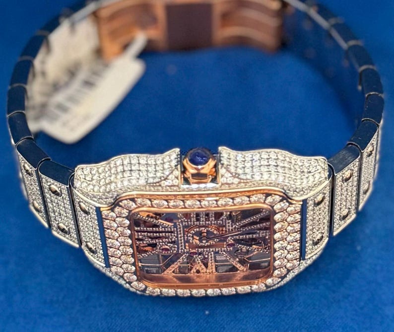 • The entire Watch Is studded with handset Moissanites. Each Link is Immaculately crafted for the Watch to rest perfectly around your wrist.
